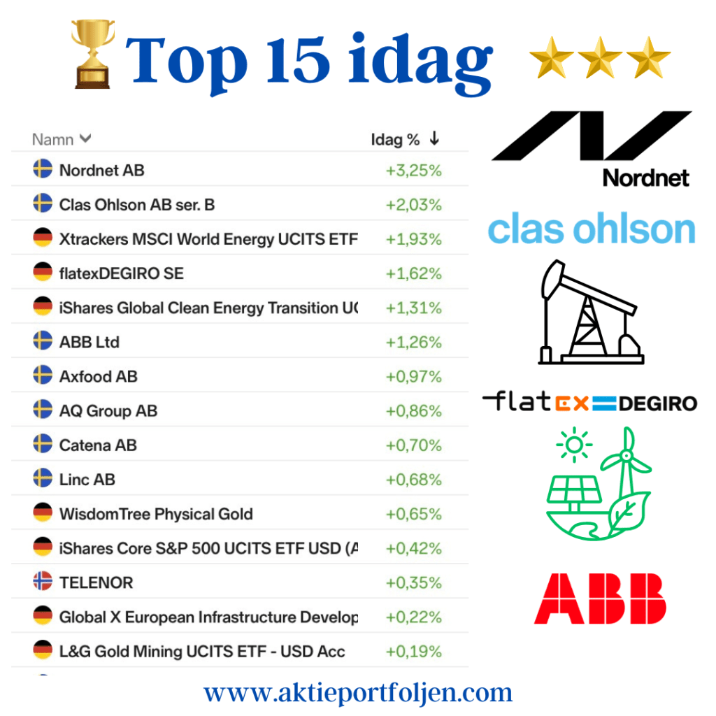8–20. Flera bolag stängde på grönt i en bred uppgång, med tyngdpunkt i kvalitetsbolag och diversifierade exponeringar.