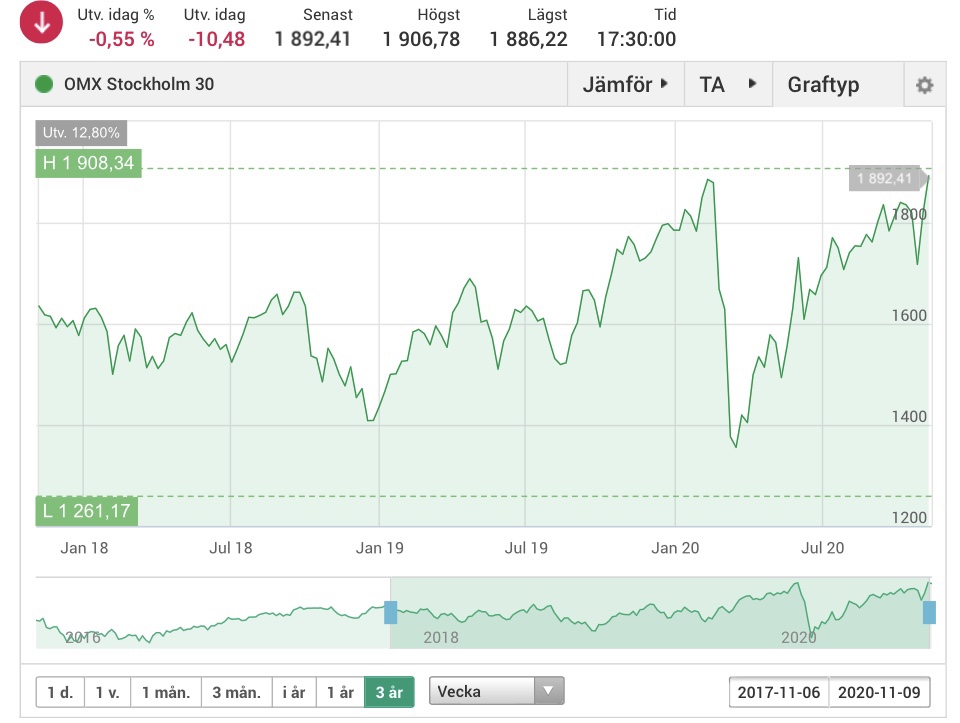 Veckans eufori på aktiehandeln har lyft världens börser till nya rekordnivåer. Är det läge för vinsthemtagningar? Igår och idag har OMX30 vid några tillfällen passerat rekordnivån 1900 punkter. Även Buffet-indikatorn ligger idag på rekordnivån 167%.