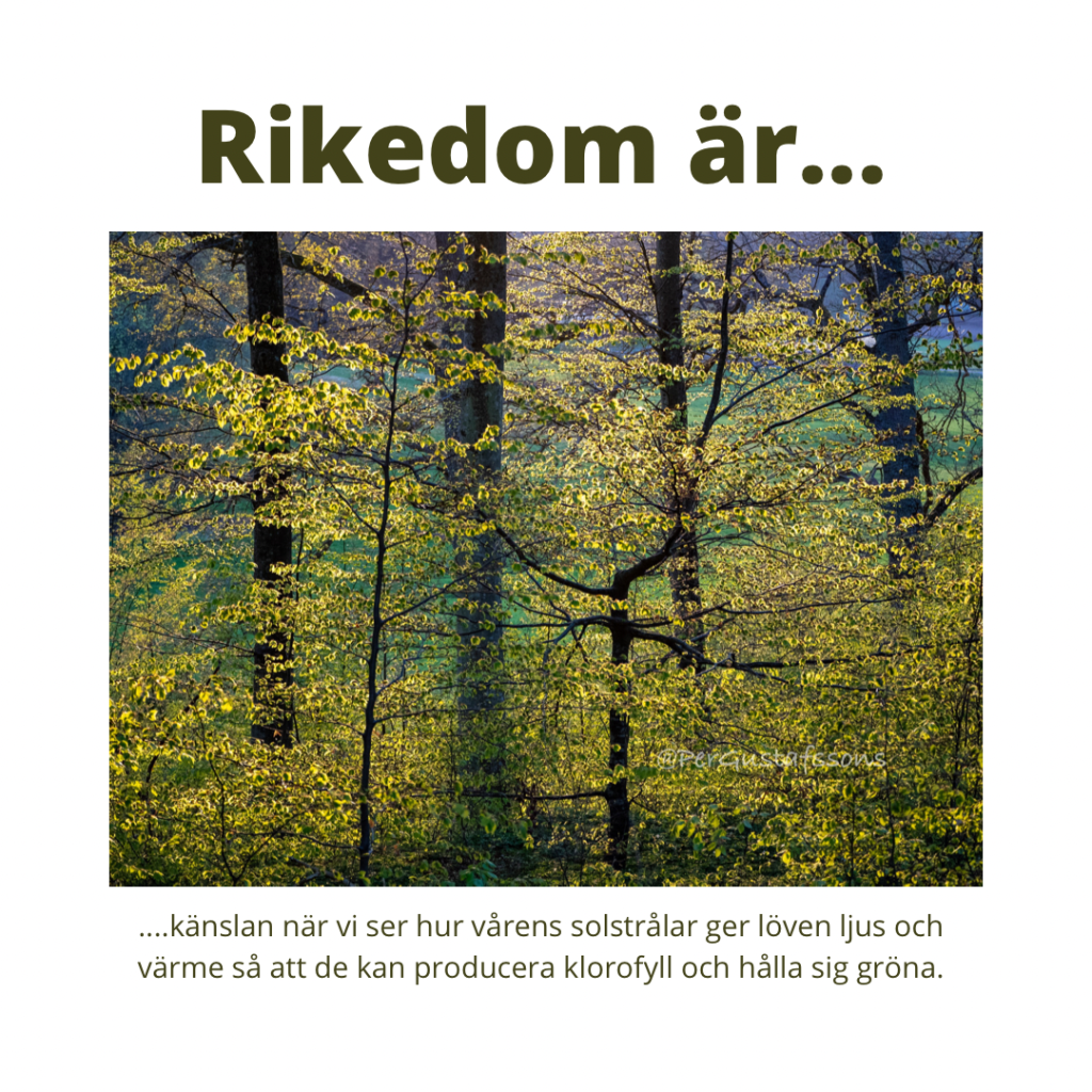 Rikedom är… 8 april, 2021Per G Ohlin Dela detta: Dela på X (Öppnas i ett nytt fönster) X Dela på Facebook (Öppnas i ett nytt fönster) Facebook Gilla detta:Gilla Laddar in … Relaterade