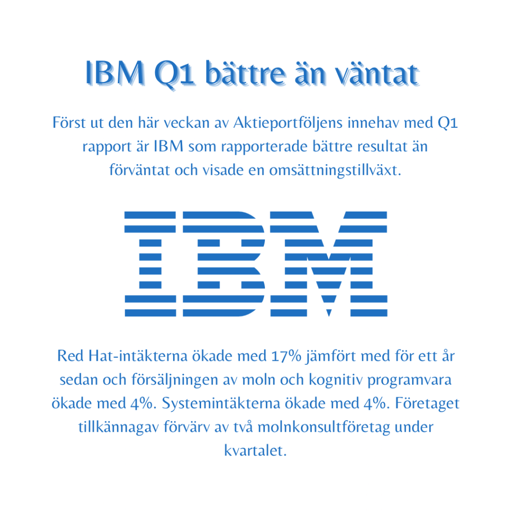 IBM bättre än väntat 19 april, 202119 april, 2021Per G Ohlin Dela detta: Dela på X (Öppnas i ett nytt fönster) X Dela på Facebook (Öppnas i ett nytt fönster) Facebook Gilla detta:Gilla Laddar in … Relaterade