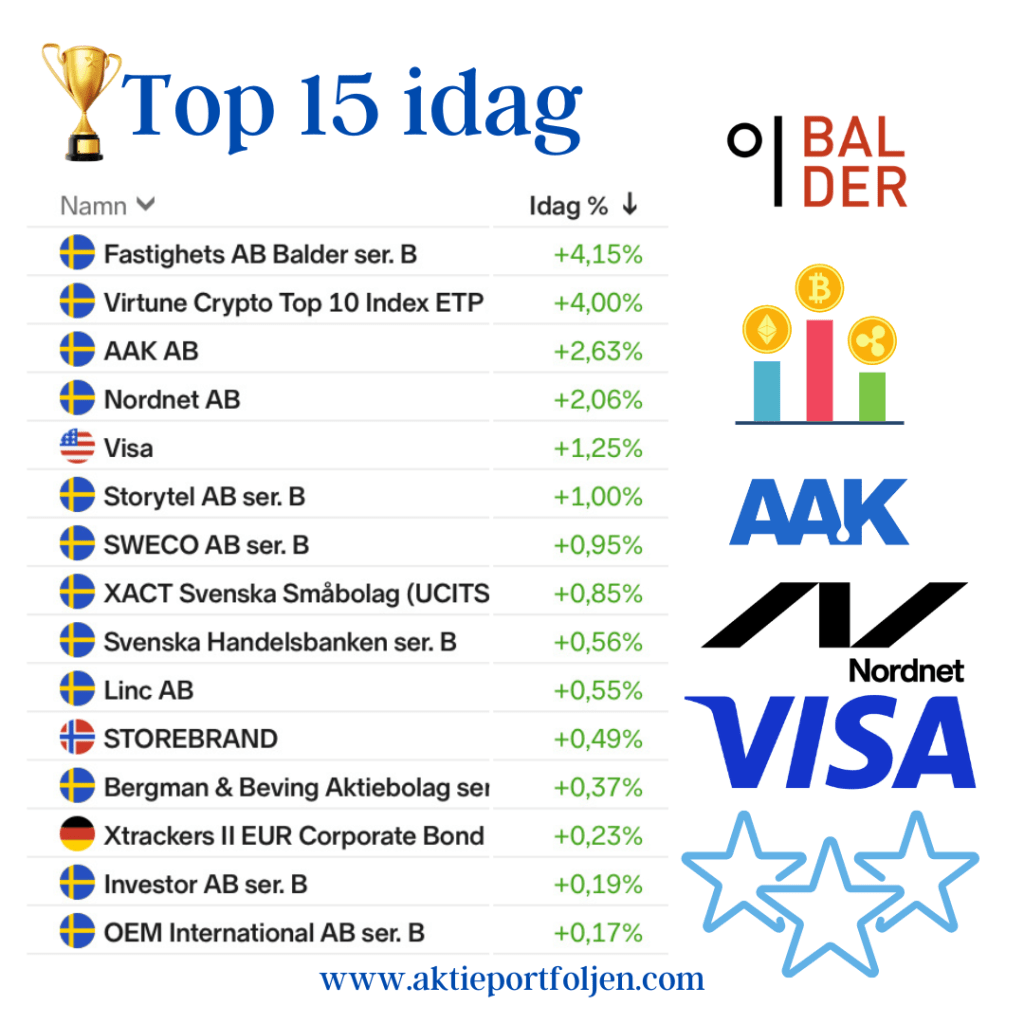 På fjärde plats kom nätmäklaren Nordnet (+2,06%) som säkert kommer att gynnas av skattereformen inom ISK och KF som träder i kraft januari 2025.