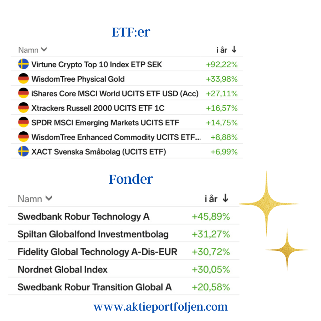 Trots svaga börser under december är samtliga Etf:er och fonder i positiv trend förutom XACT Sverige småbolagsindex som trendar under MA200 och därför har jag viktat ned till ett halvt innehav i den Etf:en.
