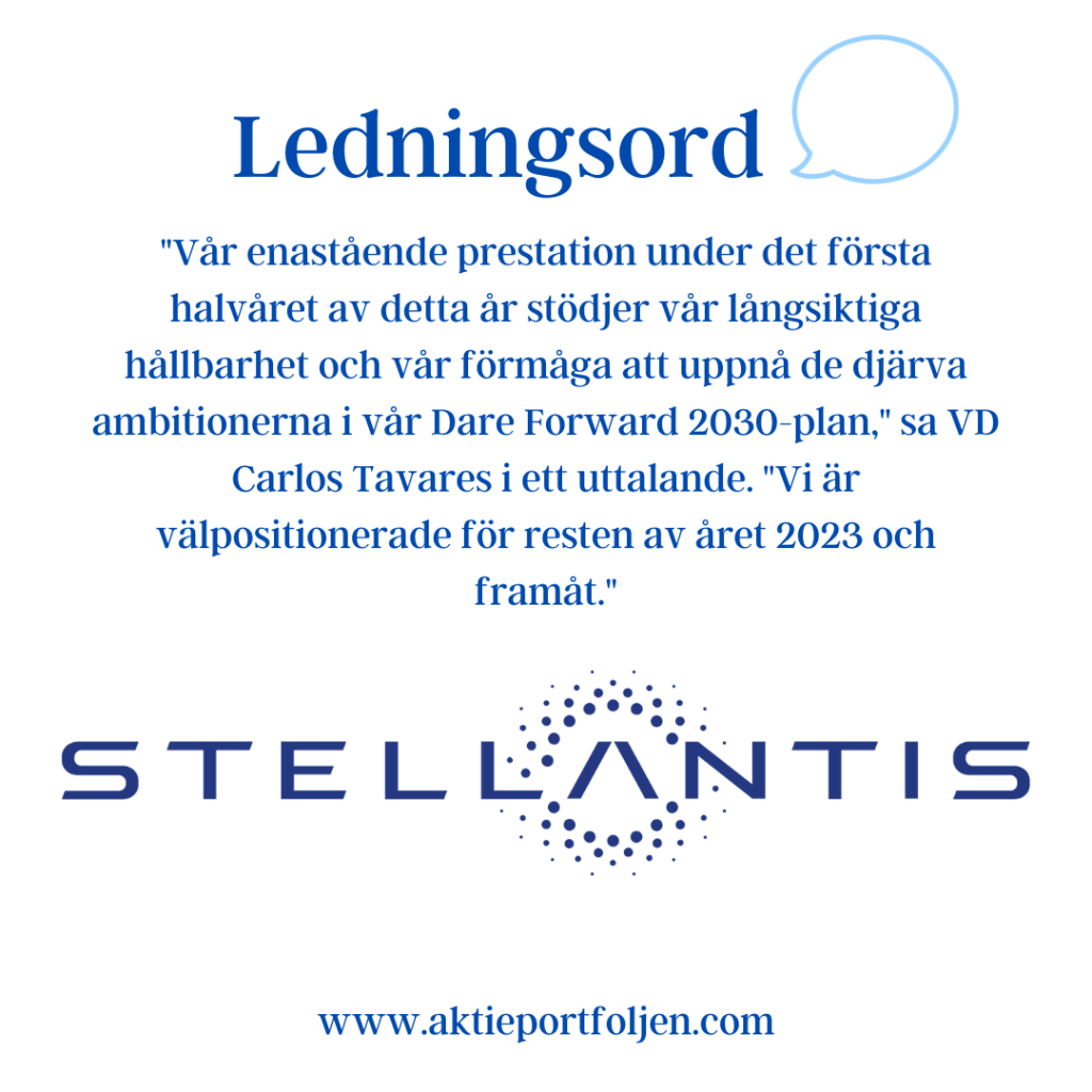 ”Vår enastående prestation under det första halvåret av detta år stödjer vår långsiktiga hållbarhet och vår förmåga att uppnå de djärva ambitionerna i vår Dare Forward 2030-plan,” sa VD Carlos Tavares i ett uttalande. ”Vi är välpositionerade för resten av året 2023 och framåt.”