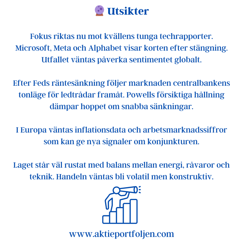 Handeln präglades av teknikfrossa i USA, där investerare tog hem vinster efter en lång uppgångsperiod. Finansprofilen Michael Burry, känd från The Big Short, skapade rubriker efter att ha tagit en större blankningsposition mot AI-jättarna Nvidia och Palantir, vilket bidrog till ett försiktigare sentiment även på hemmaplan.