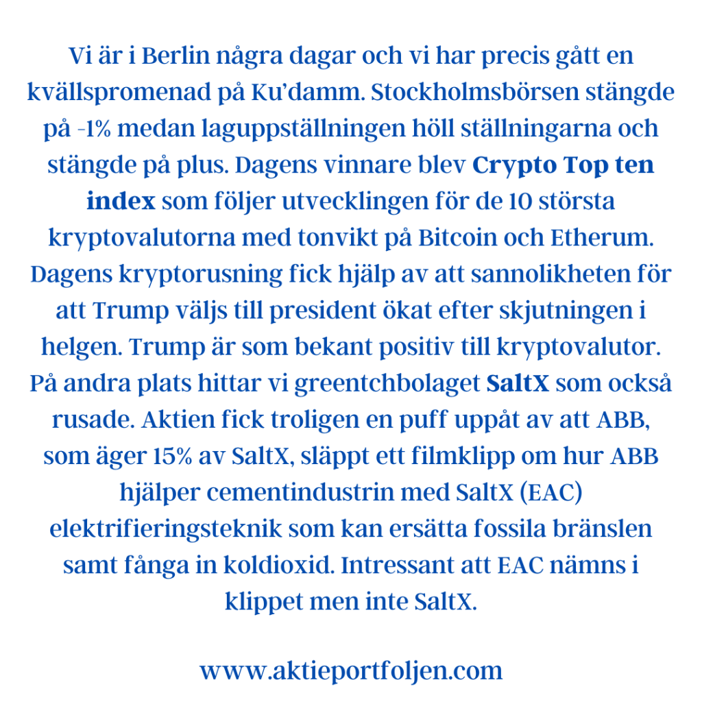 Wall Street indexen Nasdaq 100 och S&P 500 på MA200 behåller ledningen trots en negativ kortsiktig trend. Stockholms storbolagsindex har tappat fart efter flera rapportmissar från bl a verkstadsjättar.