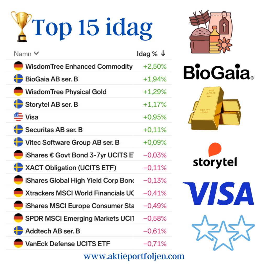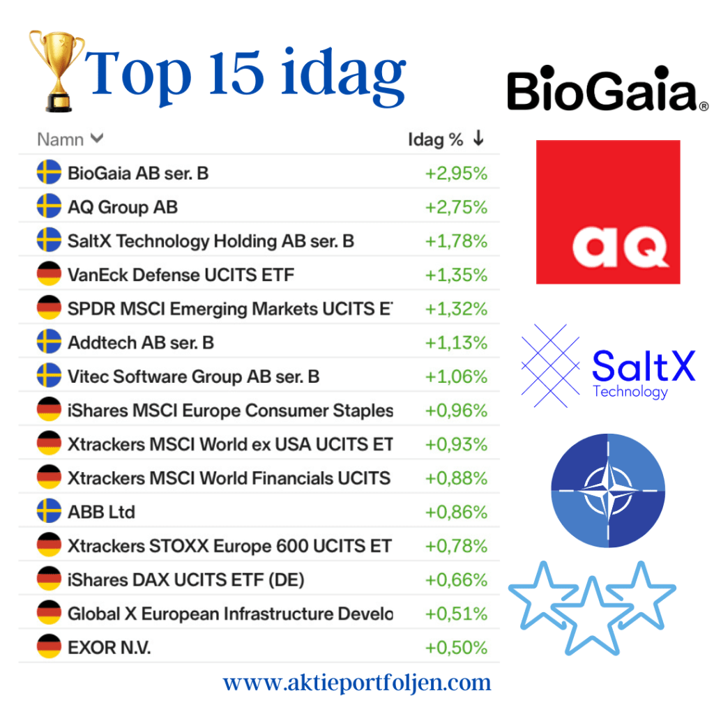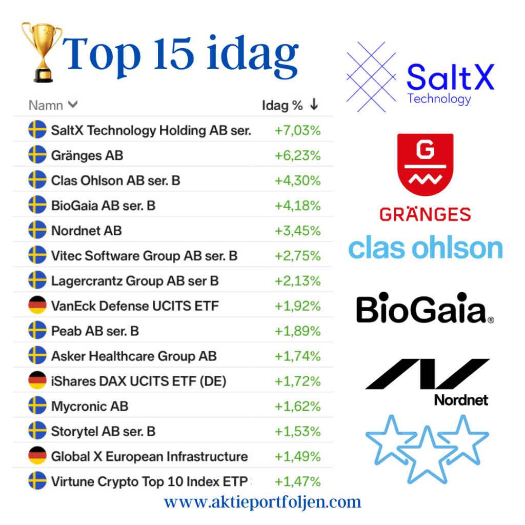 Guldet har toppat två dagar i rad och inte heller idag blev det en aktie som hoppade i ledartröjan. Istället blev det krypto-etf:en (+2,30%) som följer de tio största kryptovalutorna.