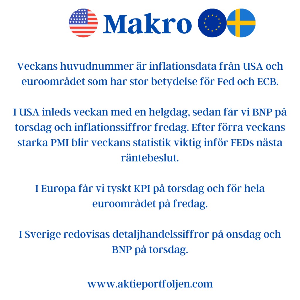 I USA blir det fokus på Trumps skattepaket, handelssamtalen med Kina och färska inflationssiffror för maj. En starkare jobbsiffra än väntat och beskedet att Kina och USA ska hålla nya samtal i London på måndag hissade upp S&P 500 i tjurmarknad med bara drygt 2% till all time high.