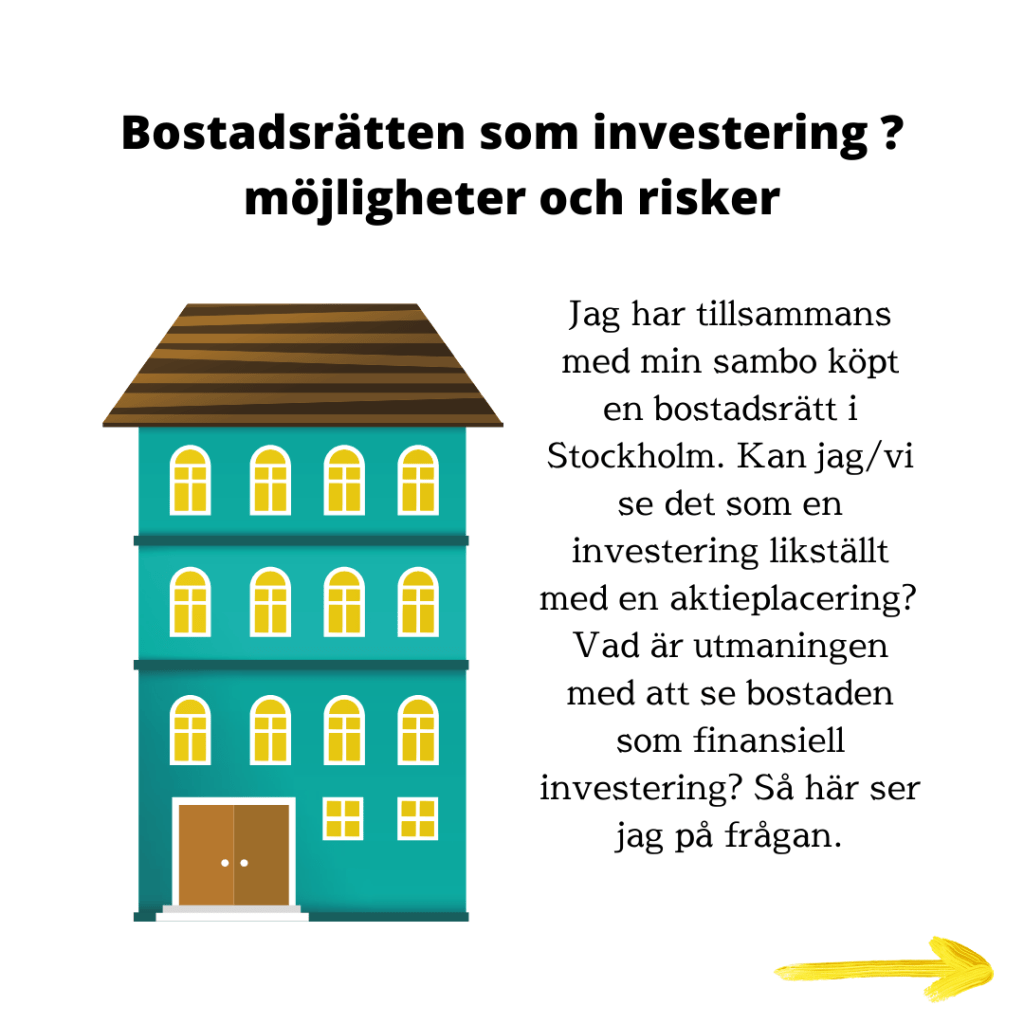 Jag följer utvecklingen av bostadsrättspriser då jag utanför börsen har investerat i två bostadsrätter utan bolån i storstadsregioner. Denna typ av investering kan inte jämföras med t ex aktier då det av naturliga skäl är en mer trögrörlig investering.