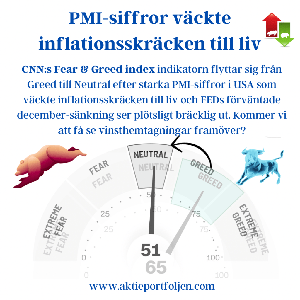 Volatilitetsindikatorerna VIX (USA) och VSTOXX (Europa) ligger på normala nivåer, vilket signalerar en fortsatt riskaptit. Även det amerikanska Fear & Greed Index bekräftar denna trend. Denna optimism står dock i stark kontrast till AAII-enkäten, som precis som förra veckan visar en ökning av pessimistiska investerare.