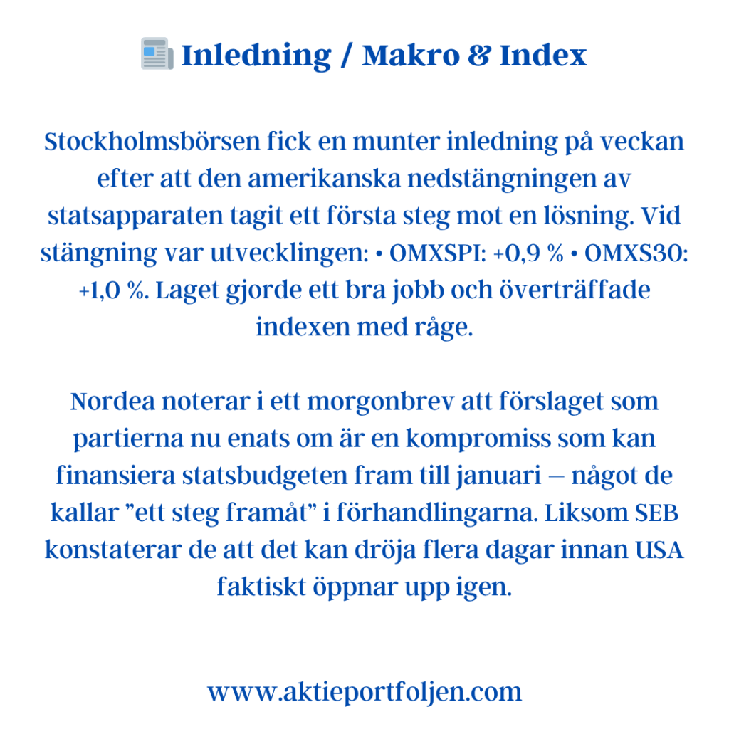 Sammanfattningsvis bekräftar dagen bilden av en marknad där kapitalet söker tydliga teman med uthållighet, snarare än bred risk. Så länge realräntor och osäkerhet håller sig på nuvarande nivåer, finns goda förutsättningar för att ädelmetaller och tematiska exponeringar fortsätter spela en central roll i portföljerna.