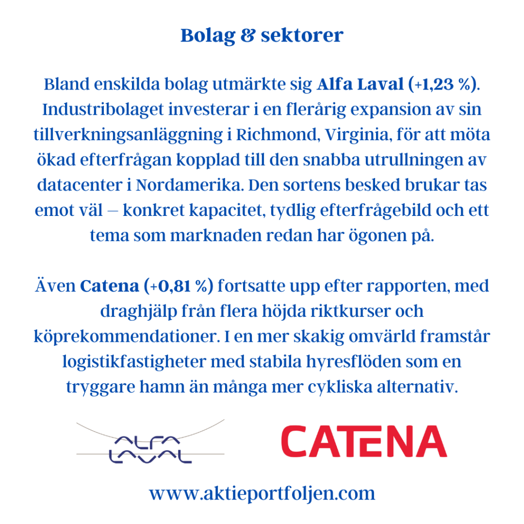 Tekniskt fann dock guldet stöd kring 4 200 dollar per uns, där köpare återkom. Därefter har metallen återhämtat sig och återtagit sin roll som hedge i takt med att osäkerheten består. Det understryker hur kapitalet just nu balanserar mellan riskaptit och skyddsbehov.