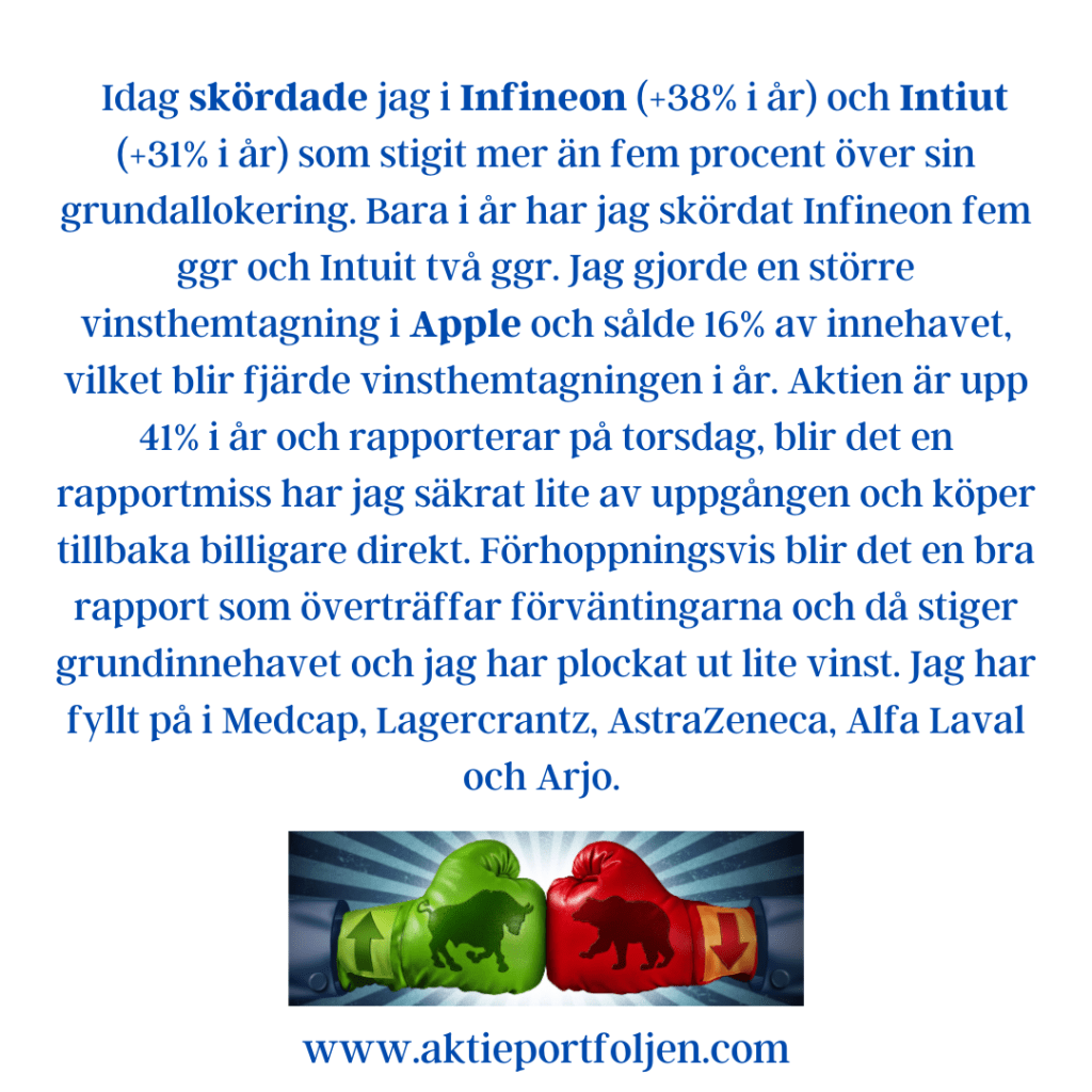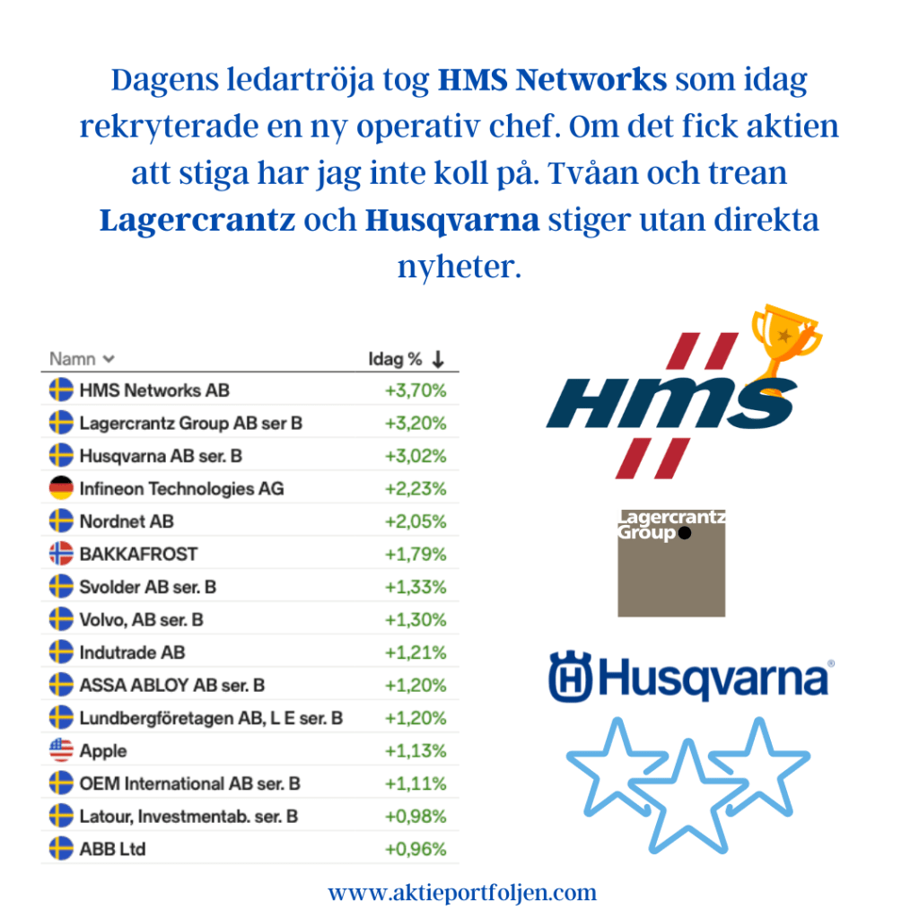 Flera innehav i laguppställningen gick motströms och hela top15 stängde på grönt.