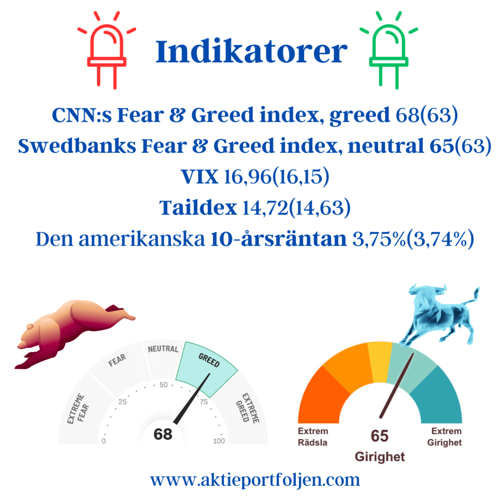 Det blev årets största fall på Wall Street (Nasdaq Comp -2,20) efter svaga makrosiffror. Konsument-förtroendeindexet sjönk mer än väntat och inflationsförväntningarna steg rejält inför hot om höjda tullar och politisk osäkerhet. Dessutom backade inköpschefsindex till den lägsta noteringen på 17 månader. Pessimismen fullbordades när försäljningstakten på nya bostäder också kom in sämre än väntat. Skräckindexet VIX steg med 16% till 18,21, men är förvånansvärt nog fortfarande under 20 som anses vara tröskeln till förhöjd riskaversion och volatilitet.