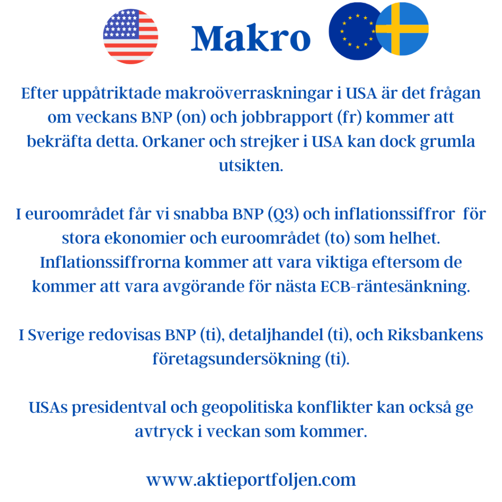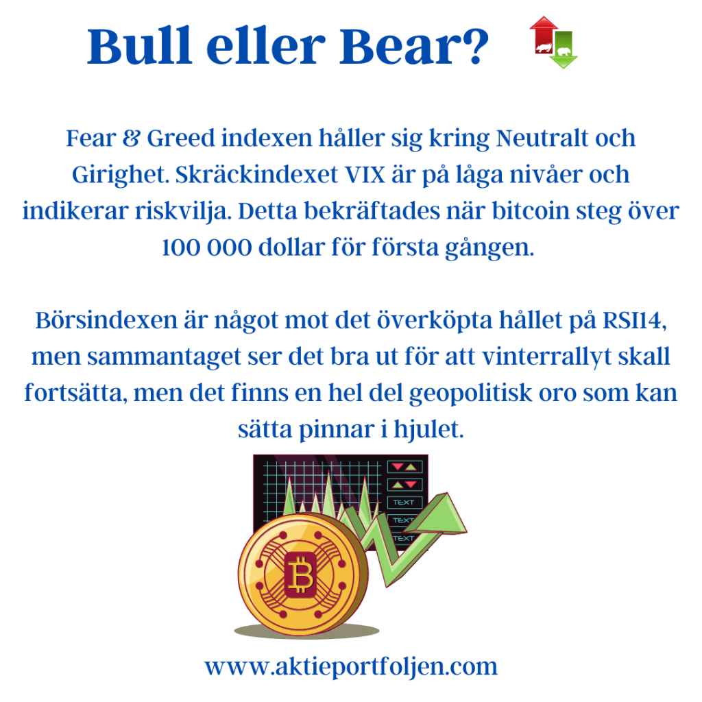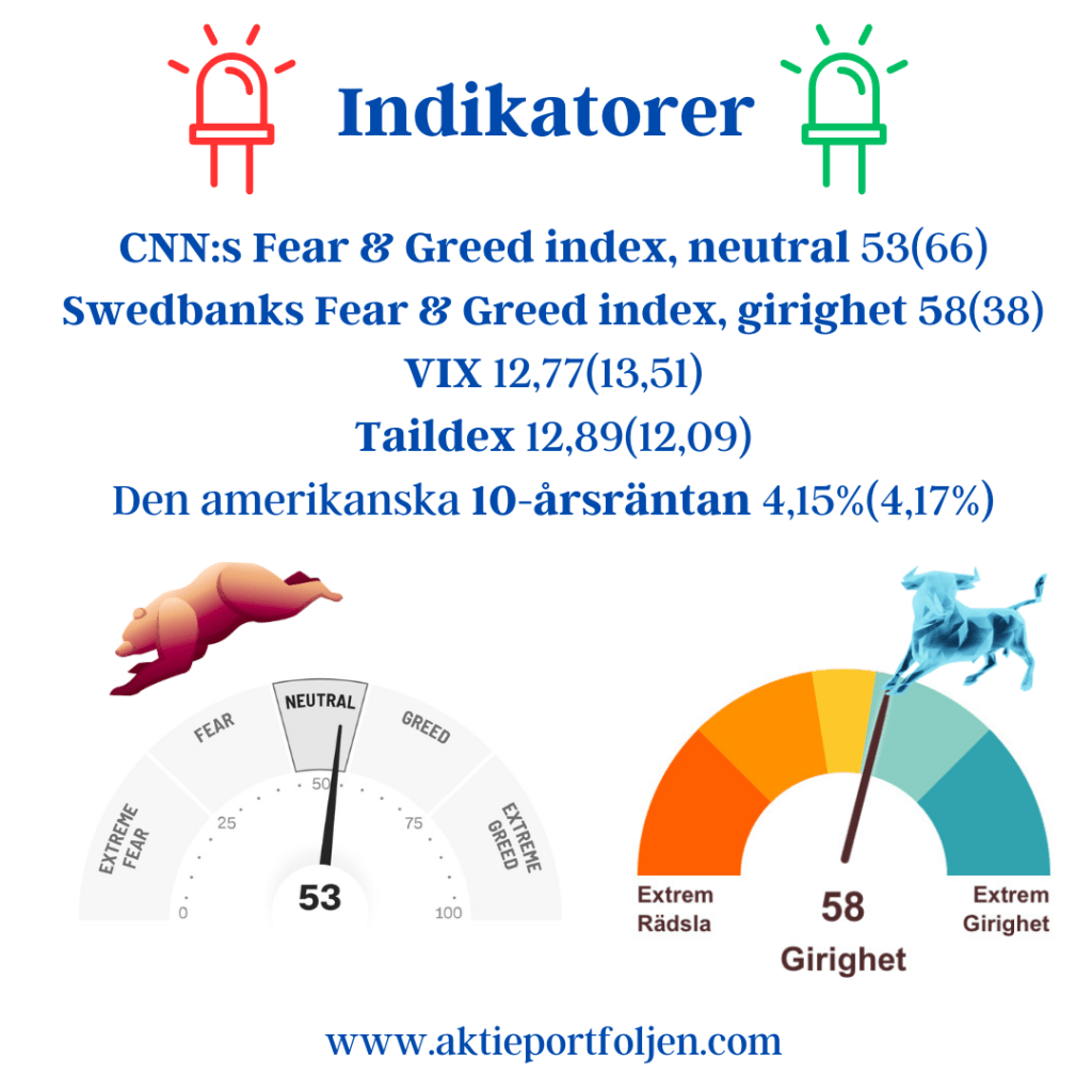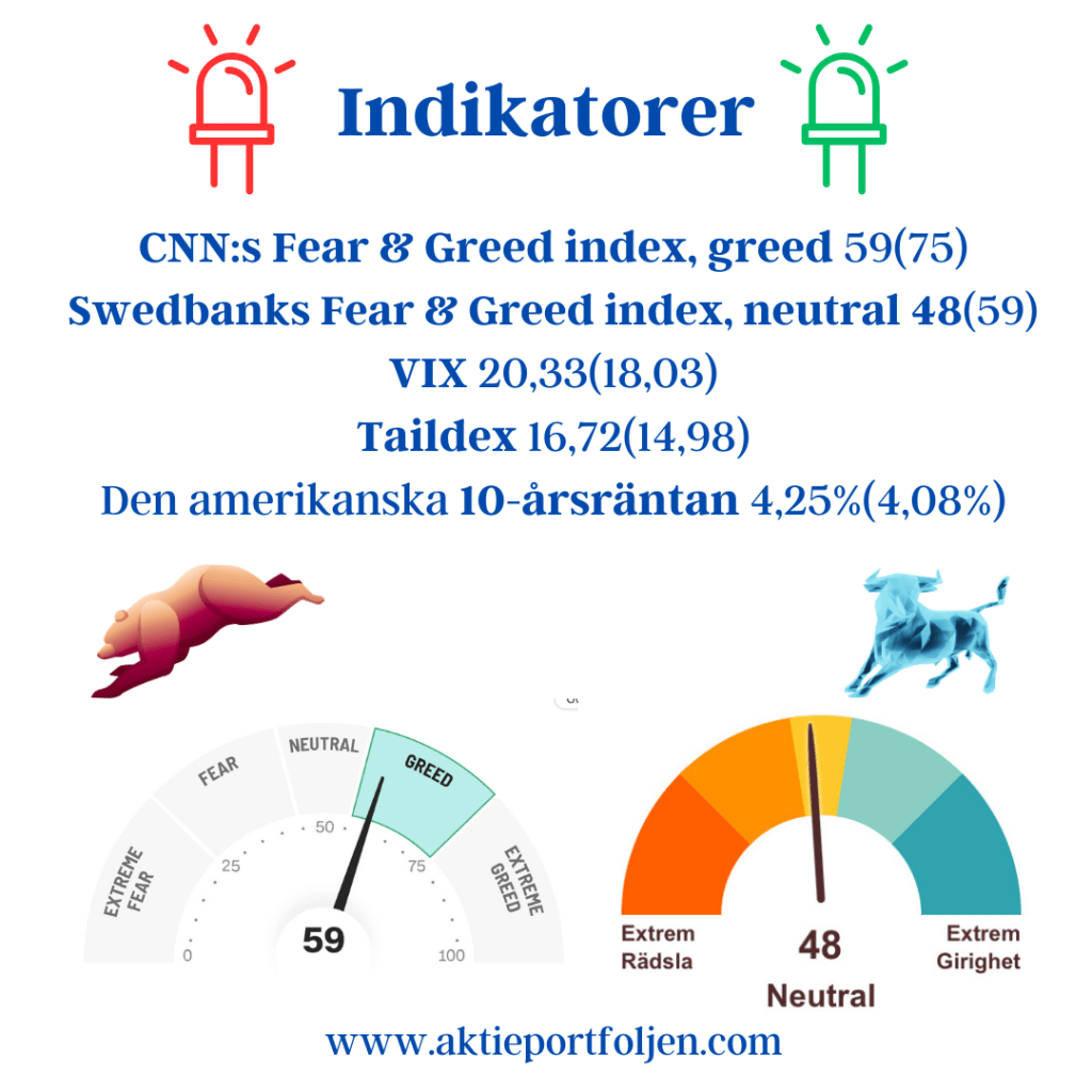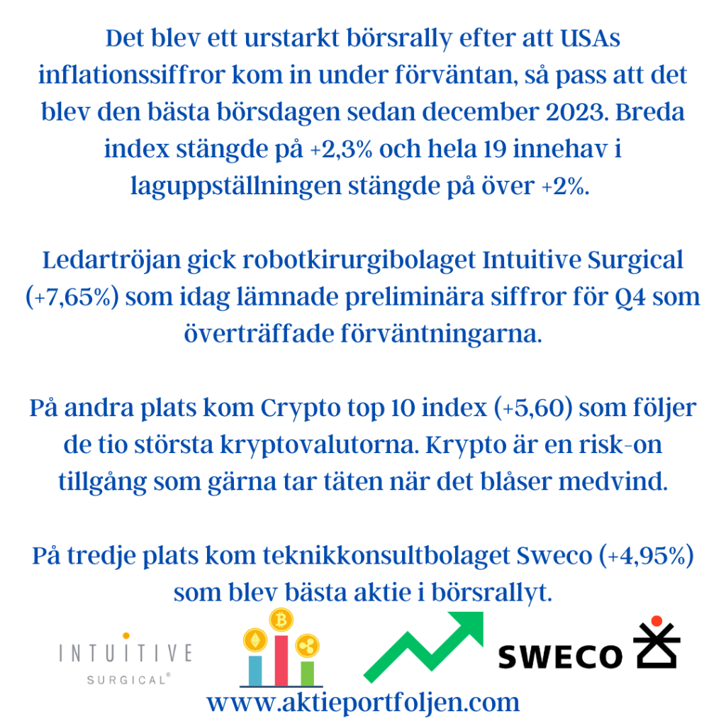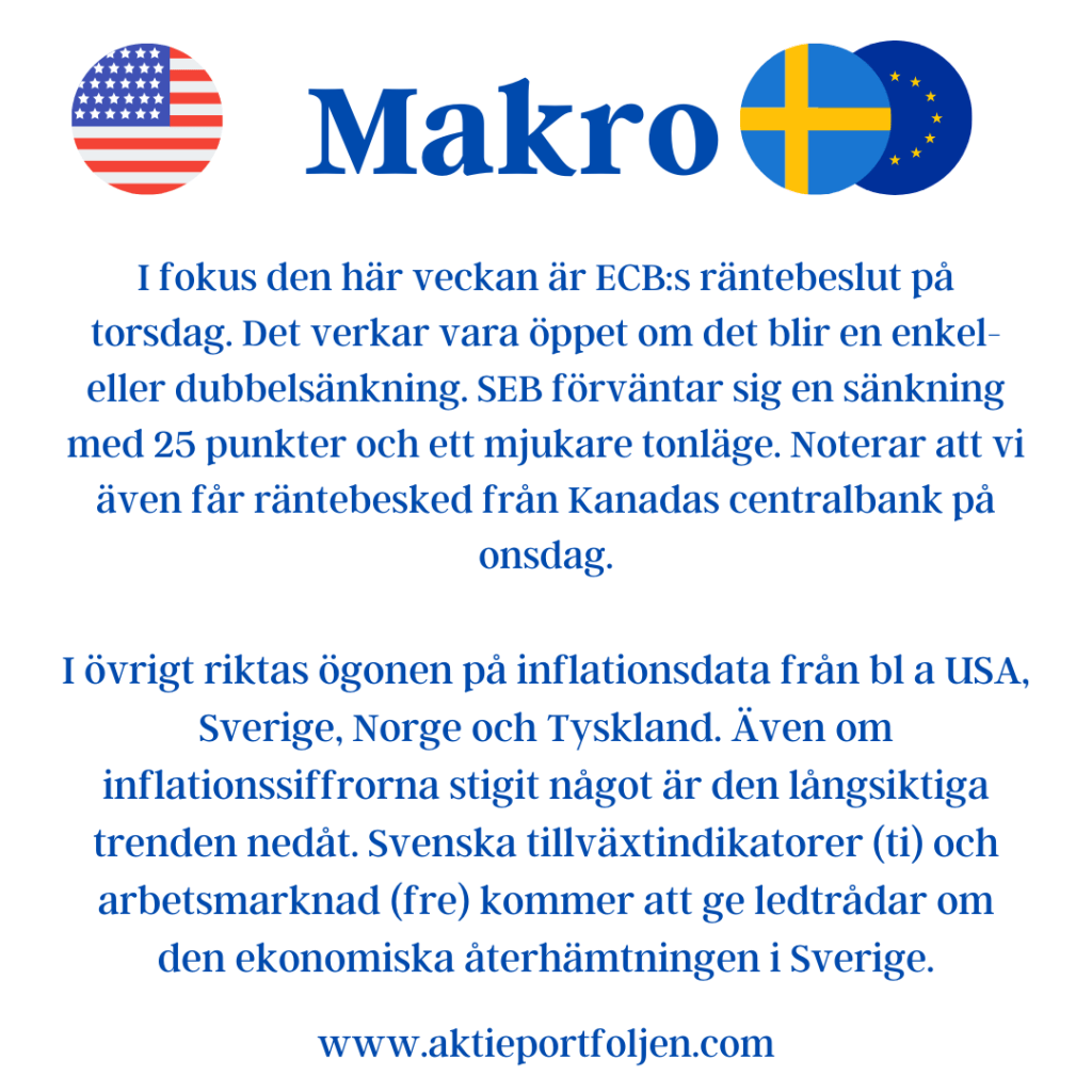 Kassan är nu på rekordhöga 33,4% inklusive obligationer och räntor. Under rådande geopolitiska osäkerhet plockar jag inte in några nya bolag på planen när något bolag får lämna planen när aktien faller under MA200, men jag låter de bolag och etf:er som är de bästa trenderna löpa på och ibland fyller jag på när trenden bekräftas. Det är fördel Sverige och Europa.