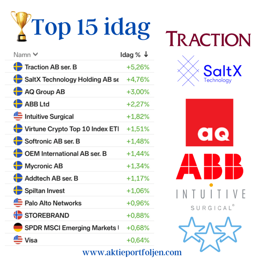 Dagens jumbo blev investmentbolaget Traction (-5,07). Någon nyhet kring nedgången hittar jag inte.