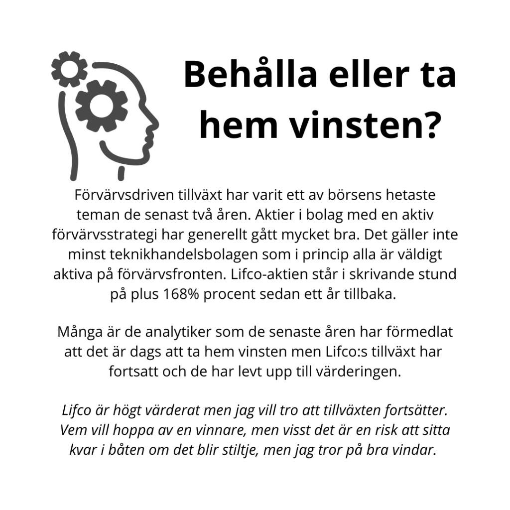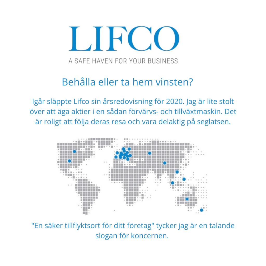 Jag välkomnar Lifco som ett nytt bolag in i Aktieportföljen.