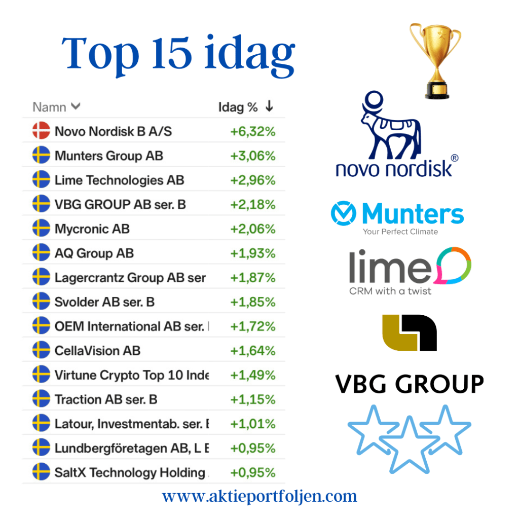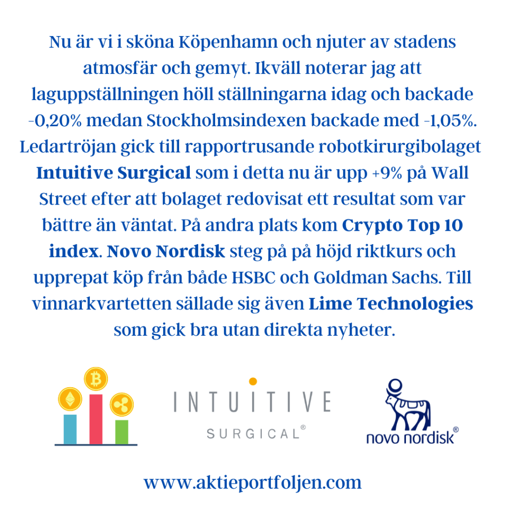 Dagens ledartröja gick till medicinteknikbolaget Medcap som stängde på +3,88% följd av mjukvarubolaget Lime Technologies och Crypto top 10 index. Samtliga steg utan direkta nyheter på en munter börs.