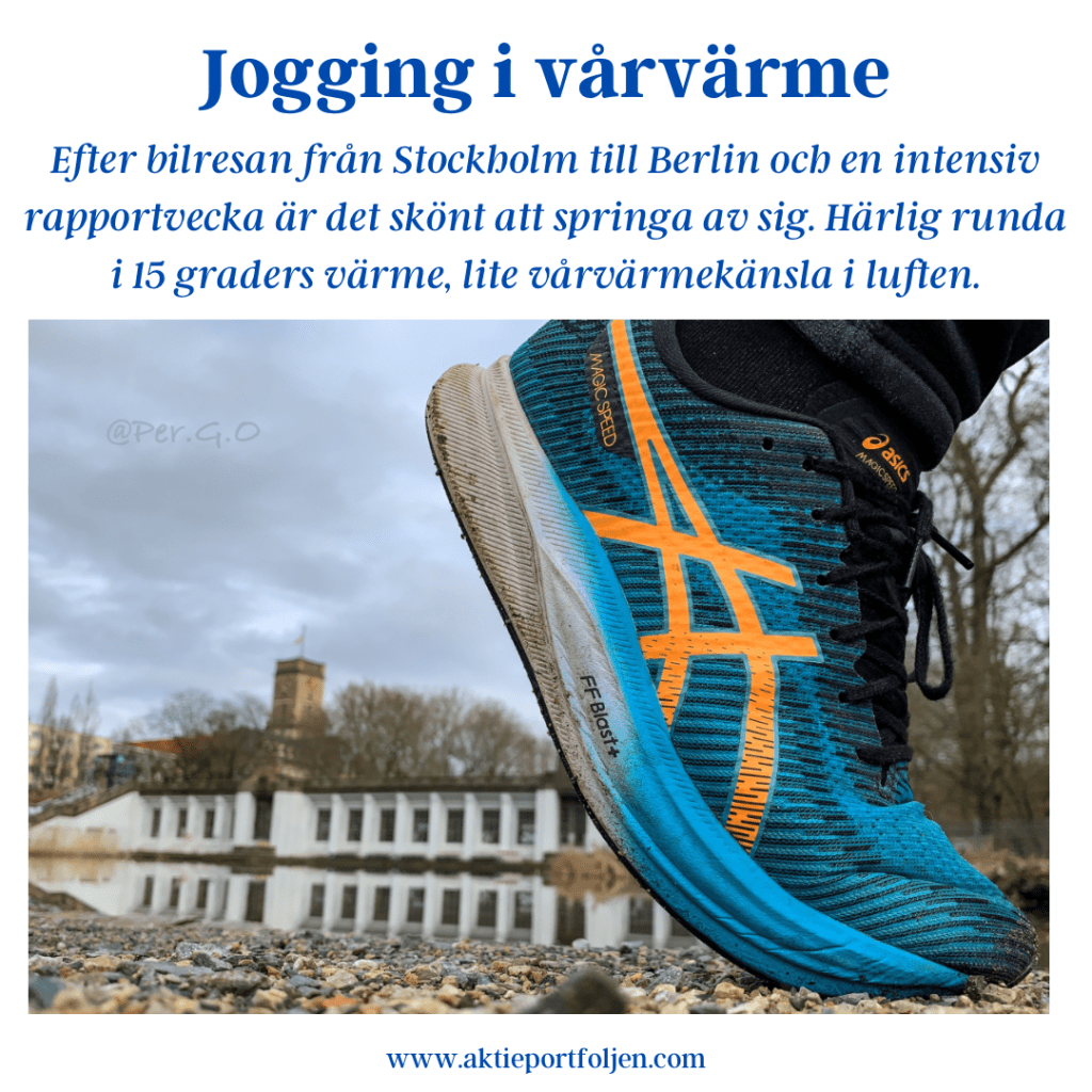 Efter bilresan från Stockholm till Berlin och en intensiv rapportvecka är det skönt att springa av sig. Härlig runda i 15 graders värme, lite vårvärmekänsla i luften.