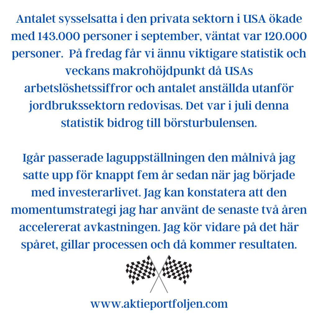 Visserligen är det tråkigt när bolag får flytta till avbytarbänken, men å andra sidan är jakten på nya bolag rolig, och det passar bra att få mer torrt krut i början på rapportperioden. Jag kommer att följa hur bolagen på avbytarbänken rapporterar och ta nya positioner i närtid, alternativt öka i befintliga.