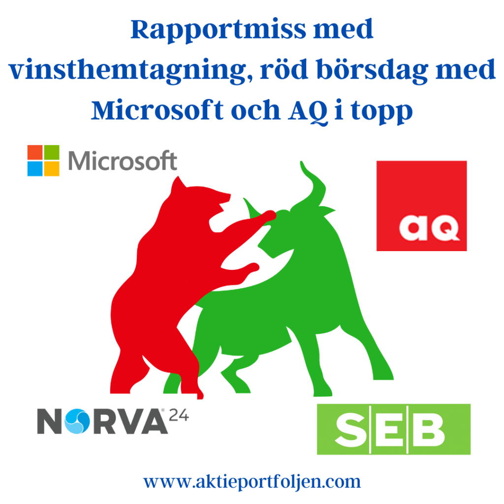 Idag fick laguppställningen täcka upp för två tunga ras, men först det positiva. Det var längesedan techjätten Microsoft (+1,92%) fick glänsa med ledartröjan, men idag gick aktien bäst, åtminstone vid europabörsernas stängning, inför rapporten i nästa vecka.