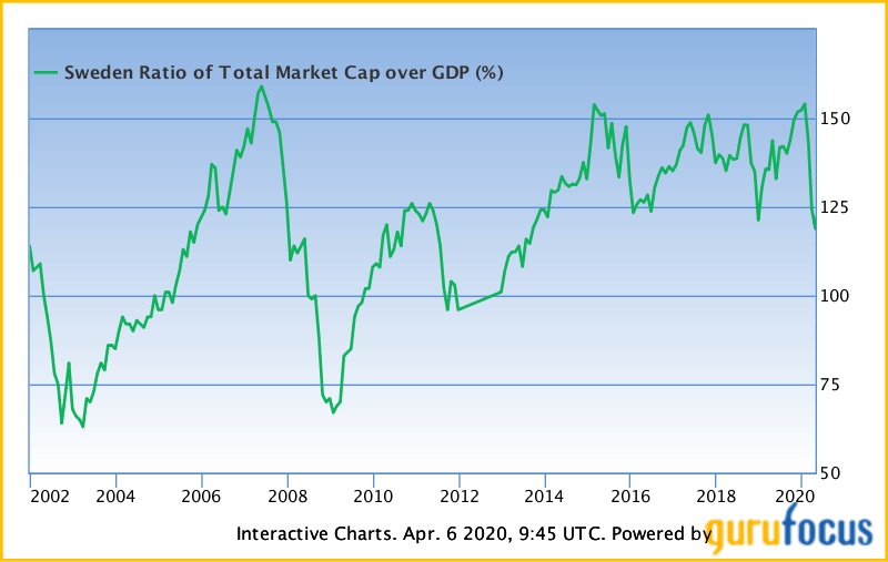 År 2000 var Sveriges börsvärdet högre än BNP. Sedan kom IT-kraschen börsen föll rejält. När börsen sedan bröt 60% nivån kom därefter en uppgång. Samma sak hände vid finanskrisen 2008 som följdes av en uppåtgående trend fram till 2017 då börsen vände nedåt efter att ha passerat brytpunkten vid 140%.
