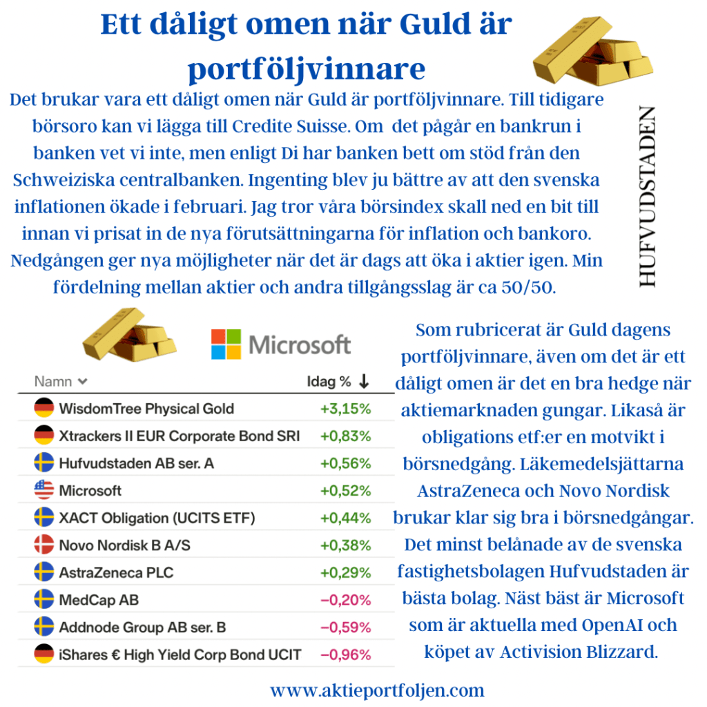 Idag, när börsindexen är i bullish trend håller jag 90% i aktier och 10% i alternativa placeringar.