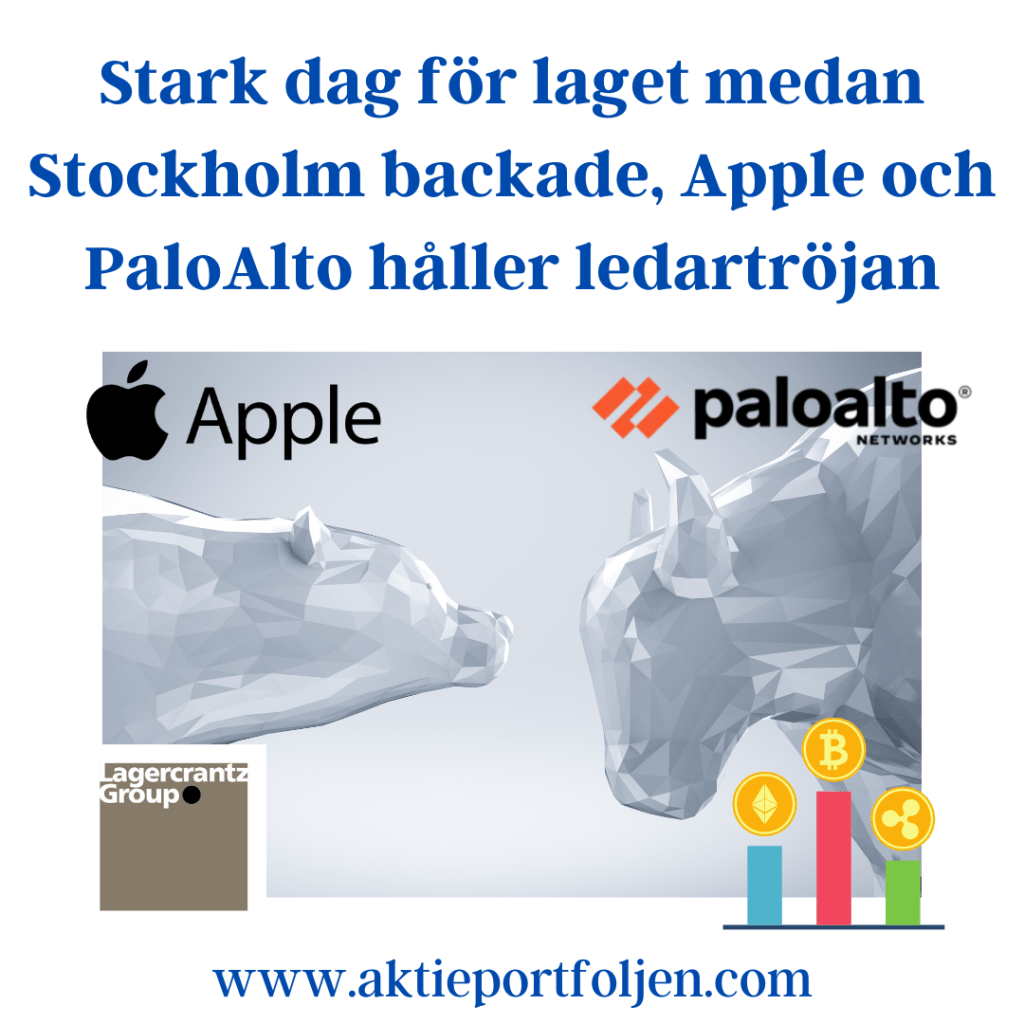 Vilken målande beskrivning och det känns lite som att Intuitive Surgical och PaloAlto fick bäras ut på bår när bolagens aktier föll under under MA200 och jag gjorde en slutlig vinsthemtagning. Fantastiska bolag som är välkomna tillbaka, men nu får de vila ett tag. Nu är det bara två amerikanska bolag kvar i laguppställningen, Apple och Visa, men den förstnämndas plats hänger på en skör tråd då aktien är strax under MA200. Vi får se vad som händer imorgon.