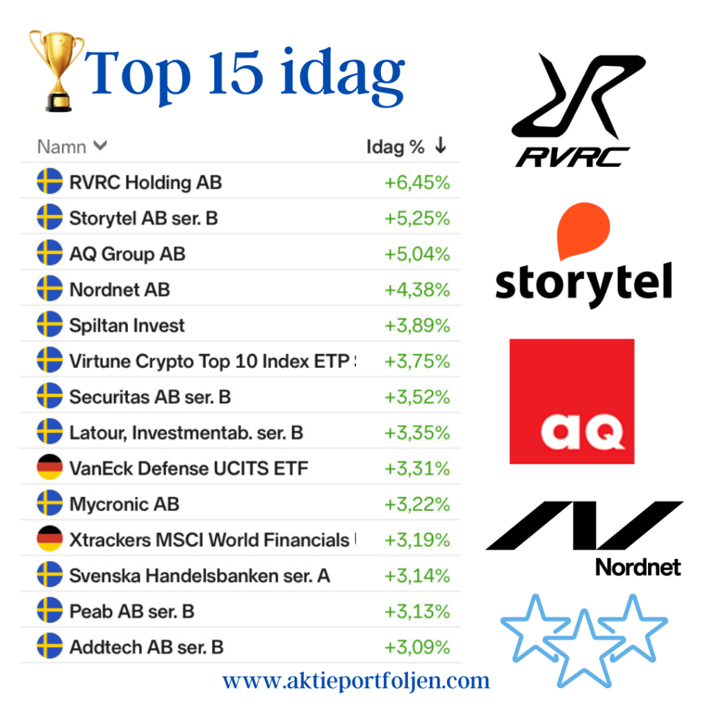 I toppen placerade sig även friluftsbolaget RevolutionRace som precis som Storytel bör vara ett bolag som klarar sig bra i nuvarande tulloro.