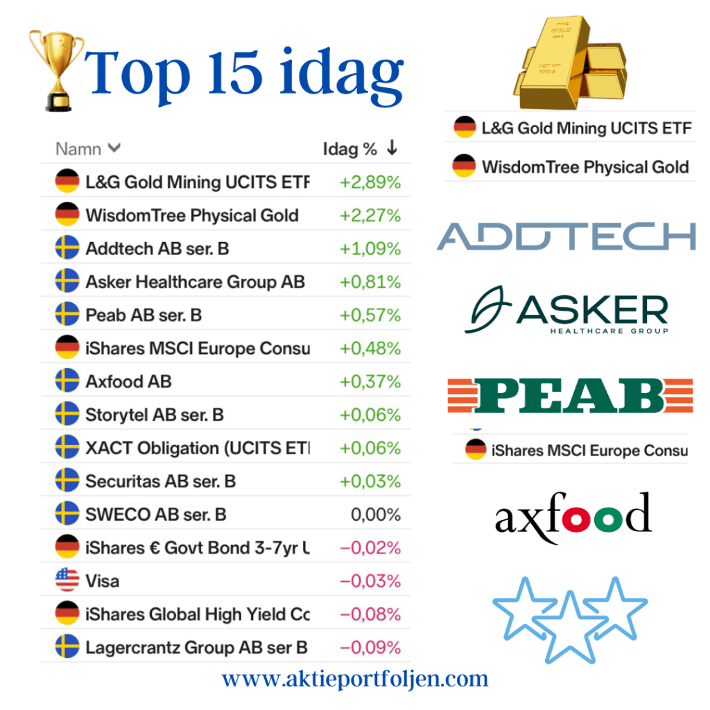 Guldet har toppat två dagar i rad och inte heller idag blev det en aktie som hoppade i ledartröjan. Istället blev det krypto-etf:en (+2,30%) som följer de tio största kryptovalutorna.