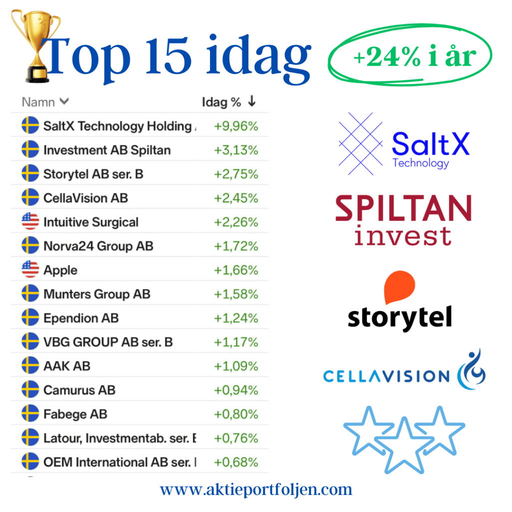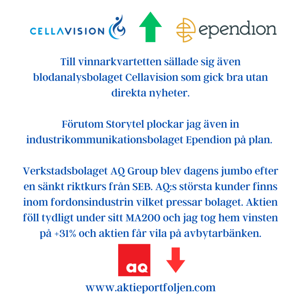 Centralbanksbeskeden är avklarade och nu kan vi fokusera på det fortsatta rapportflödet. Laguppställningen fick en bra vecka och avslutade med en rapportvinnare i topp. Laget stängde även idag en bra bit ovanför Stockholmsbörsens index (0MX30 +0,31%).