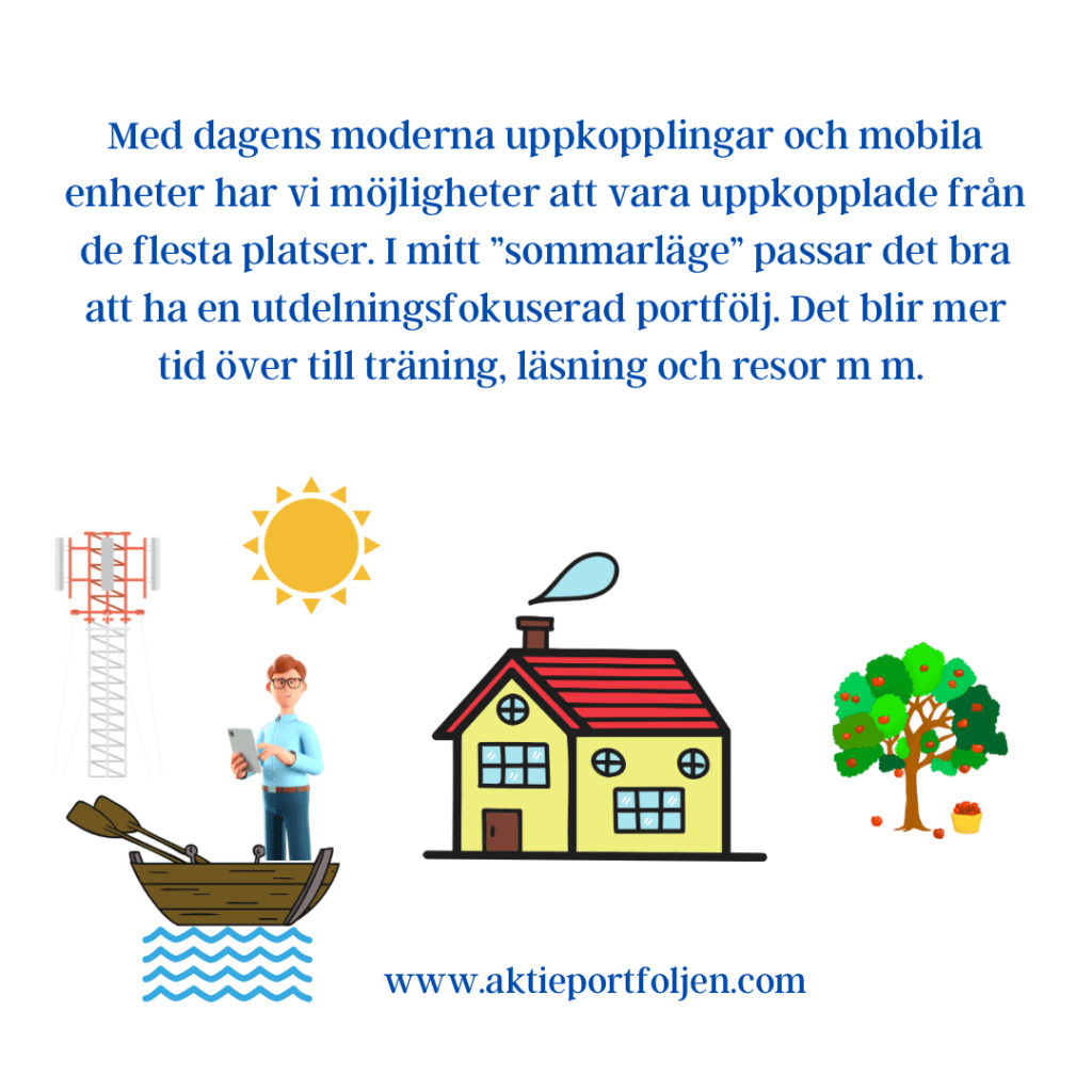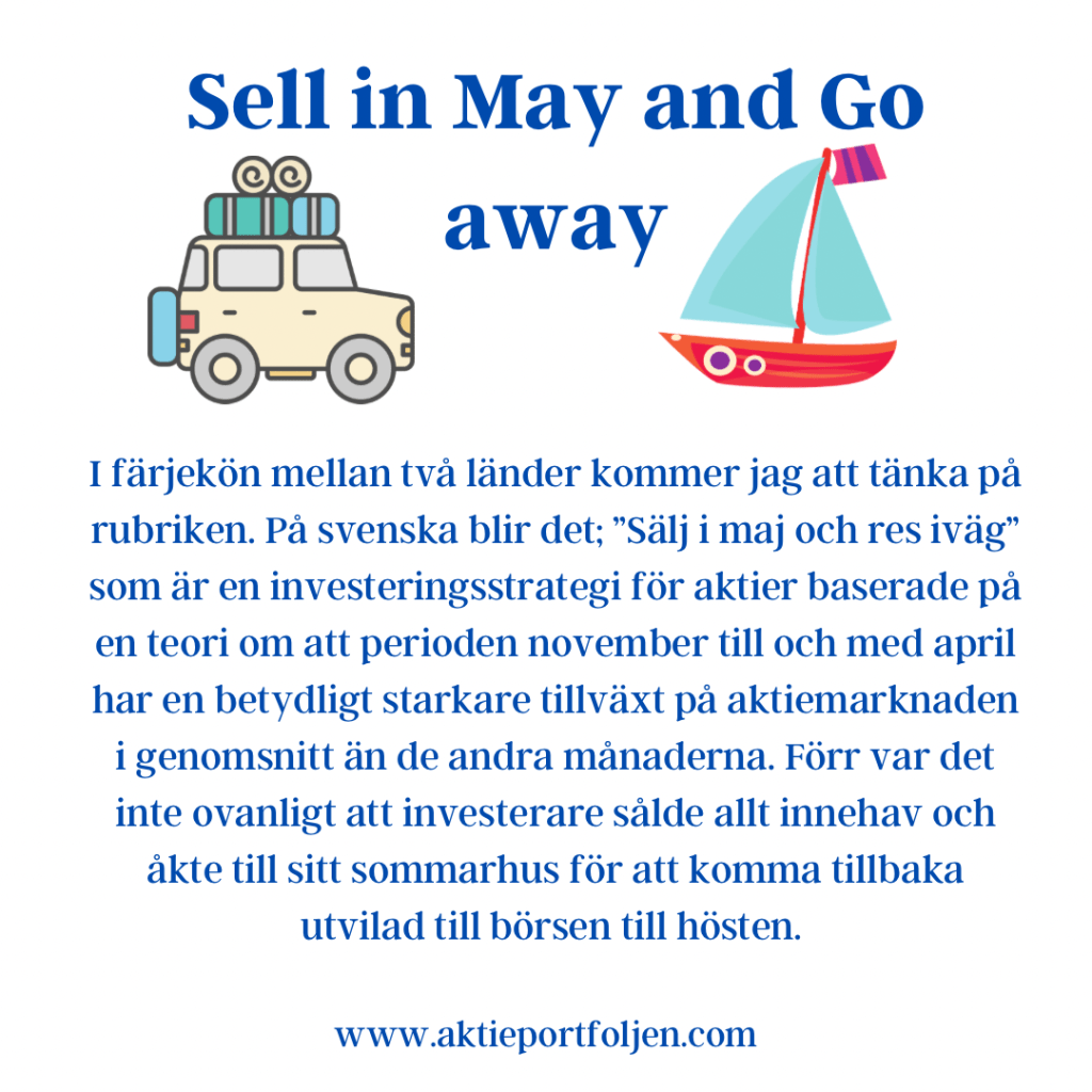 I färjekön mellan två länder kommer jag att tänka på rubriken. På svenska blir det; ”Sälj i maj och res iväg” som är en investeringsstrategi för aktier baserade på en teori om att perioden november till och med april har en betydligt starkare tillväxt på aktiemarknaden i genomsnitt än de andra månaderna. Förr var det inte ovanligt att investerare sålde allt innehav och åkte till sitt sommarhus för att komma tillbaka utvilad till börsen till hösten. Med dagens moderna uppkopplingar och mobila enheter har vi möjligheter att vara uppkopplade från de flesta platser. I mitt ”sommarläge” passar det bra att ha en utdelningsfokuserad portfölj. Det blir mer tid över till träning, läsning och resor m m. Nu hägrar mer tid utomhus med sol och värme. Vad kan bättre illustrera detta än bilden på hägern jag tog häromdagen. Med en värdeportfölj i bagaget med dagens uppkopplingsmöjligheter blir min strategi, till skillnad från den rubricerade; ”Be safe in May and Go away”.