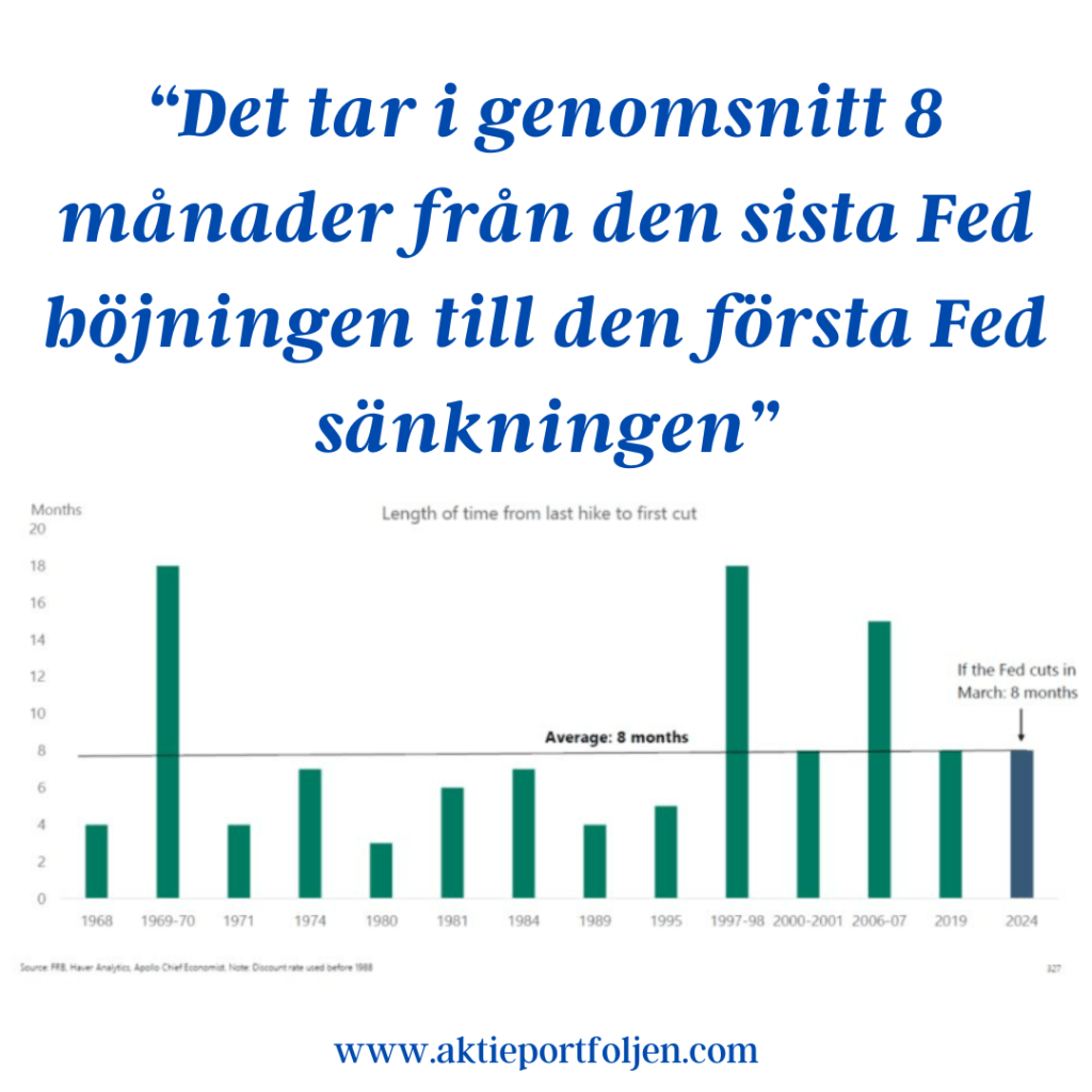 Den här veckan är det tunt på makrofronten så det blir mer fokus på rapporterna. Den urstarka jobbrapporten i USA bekräftade att ekonomin är går bättre i USA än i Europa. Det kom in 353000 nya jobb i januari jämfört med 180000 som var förväntat. Den amerikanska centralbanken Fed kan verkligen har mer “is i magen” än kollegorna i Europa när det gäller räntesänkningar. Den europeiska ekonomin har pressats mer av de höga räntorna. Frågan är på vilken sida av Atlanten där räntesänkningarna inträffar först. Fed-chefen sa vid senaste presskonferensen att det verkar otroligt att Fed sänker räntan redan i mars som marknaden prisat in. Å andra sidan är den genomsnittliga tiden från den sista räntehöjningen till den första räntesänkningen i USA åtta månader. I så fall är det dags i mars, men jag blir inte förvånad om Europa tvingas sänka räntorna först.