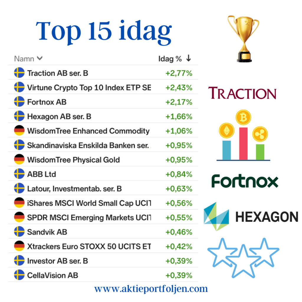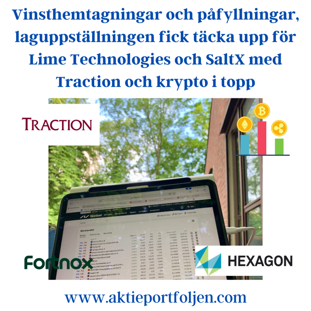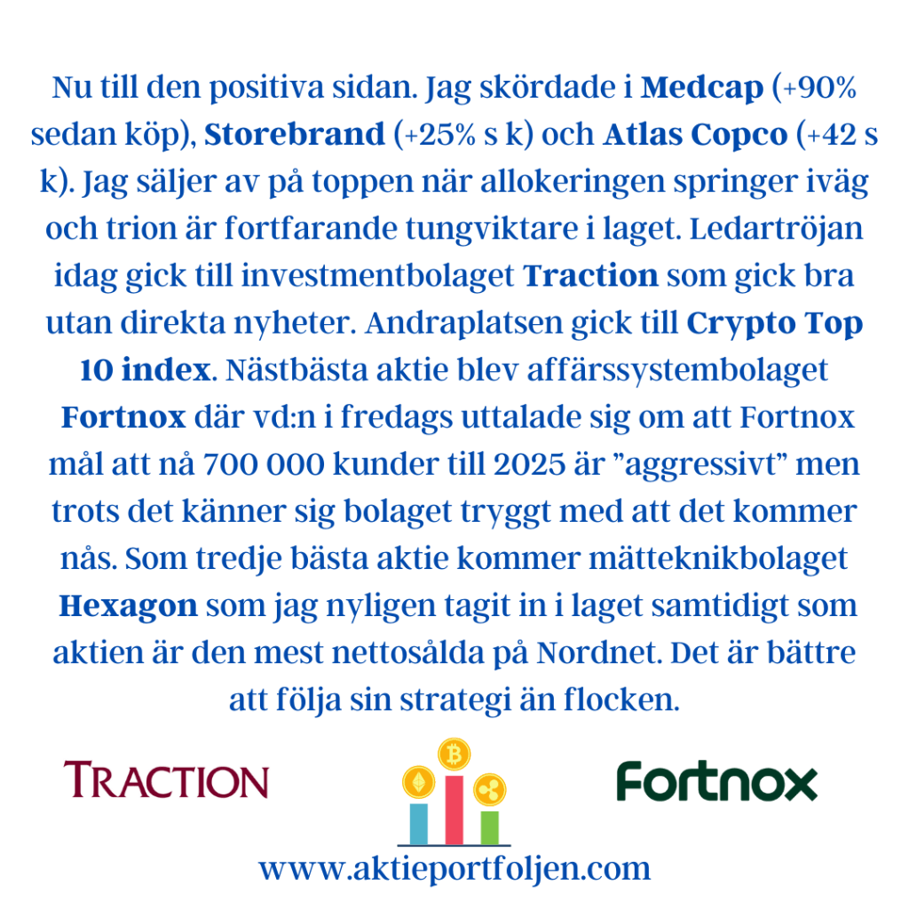 Jag fyllde på i Bergman & Beving och Sweco och dessutom uppgraderades bubblarna Fortnox och Gränges till ordinarie plats i laguppställningen.